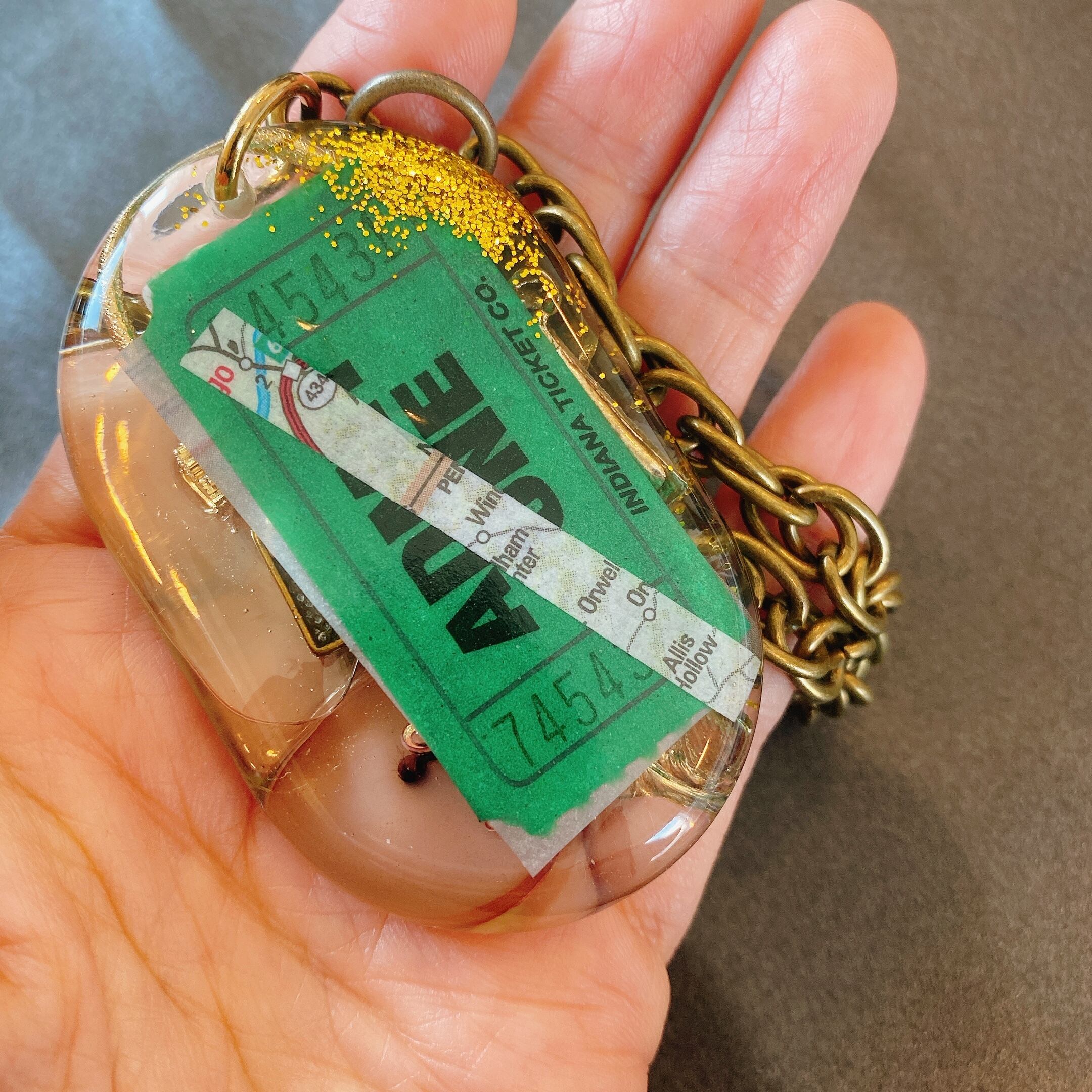 ニューヨークからやって来た素材などを使って、樹脂で制作した一点もののアクセサリーです。