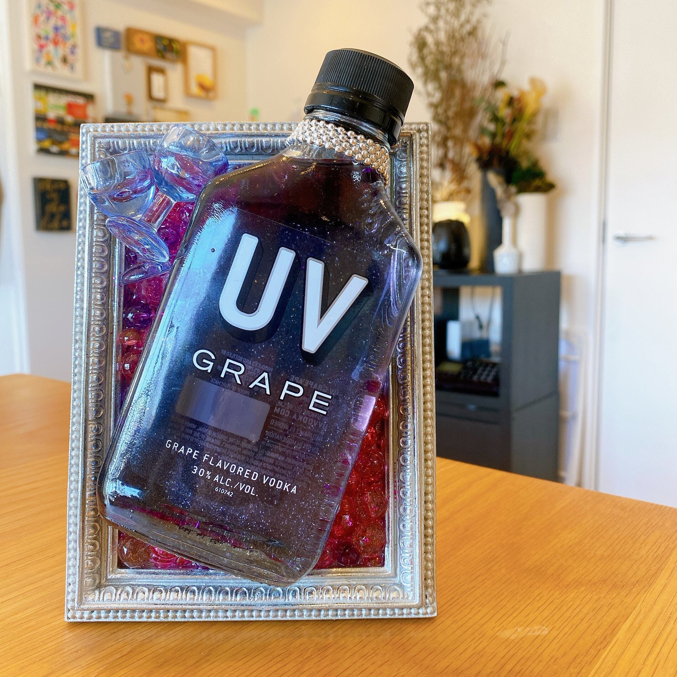 ボトルをまるごと採用した、ユニークなデザインです。グラスを重ねて添えることで、パーティーのような華やかさを演出しました。