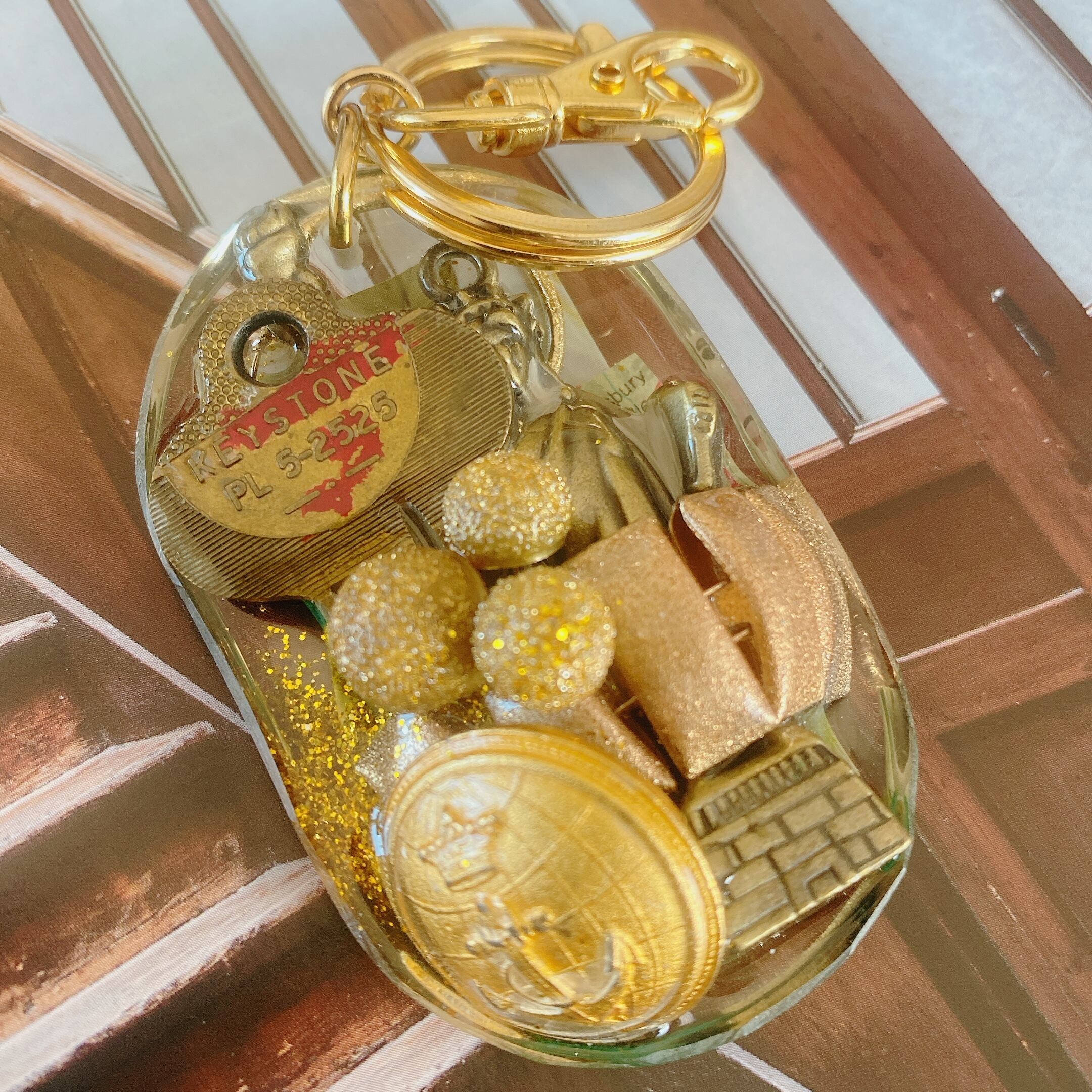 ゴールド、金古美で揃えた統一感のあるデザイン。手の中の収まりも良く、またキーホルダーとしての強度も兼ね備えています。