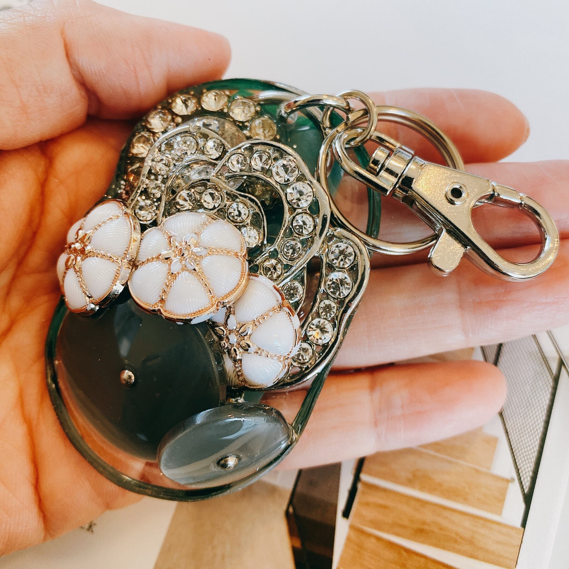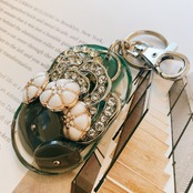 様々なジュエルパーツ、アクリルボールやシードビーズ、ユニークなモチーフたち、デザインによっては鍵(レプリカではない、実際にアメリカで活躍していた鍵です)をコラージュしながら重ね固めております。