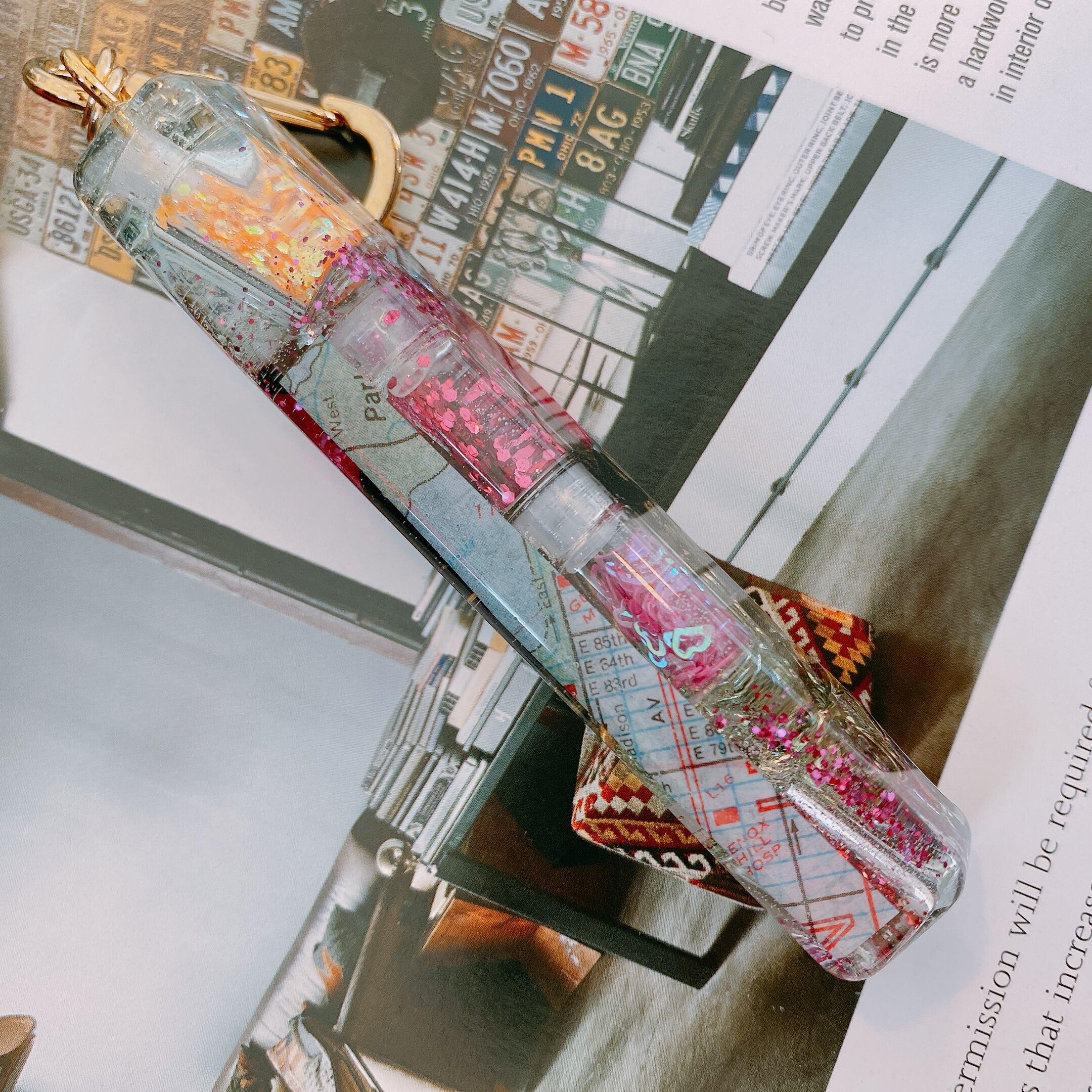 こちらに入ったラメが、キーホルダーを傾けるたびにサラサラと動きます。